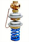 Автоматический, пропорциональный пилотный регулятор, который благодаря автоматичекиому открытию регулирующего клапана предотвращает превышение давления до себя (SAVA) и после себя (SAVD). Регулятор включает в себя две регулирующие диафрагмы, которые позволяют клапану открываться в случае неисправности одной из диафрагм. Регуляторы в основном используются в системах централизованного теплоснабжения. SAVA. Принцип действия регулятора: повышение давления передаётся по импульсным трубкам в нижнюю часть диафрагмы внутри регулятора (соединительная трубка высокого давления). Через специальный канал в регуляторе давление среды передаётся в верхнюю часть диафрагмы (соединительная трубканизкого давления). Энергия пружины начинает воздействовать на диафрагму, таким образом это позволяет устанавливать эффективный перепад давлений. SAVD. Принцип действия регулятора: импульс давления на выходе из клапана передаётся по импульсной трубке в нижнюю часть (соединительная трубка высокого давления) диафрагмы внутри регулятора. Верхняя часть (соединительная трубка низкого давления) диафрагмы соединина с атмосферой. Усилие, возникающее в пружине, передаётся на диафрагму, что позволяет устанавливать давление после клапана. |